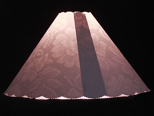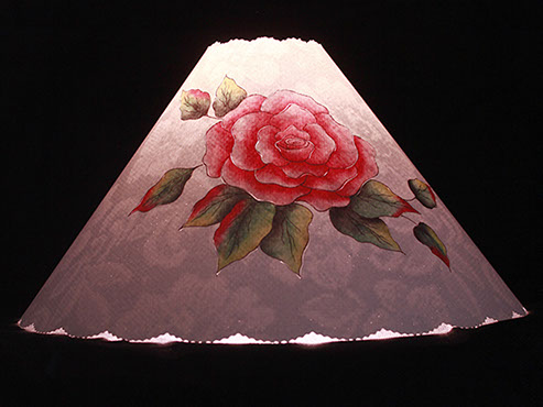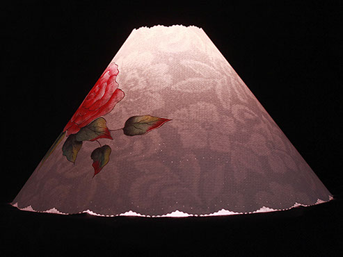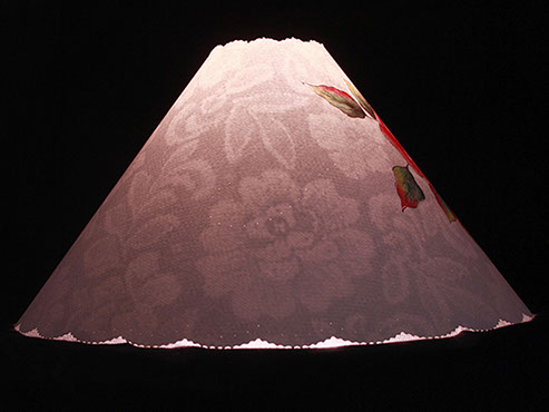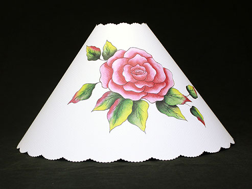 & pink rose takes center stage on this shade cover. Beautiful antique lace drapes the inside giving this cover a "Victorian" feel. A year round flower that never wilts. #404