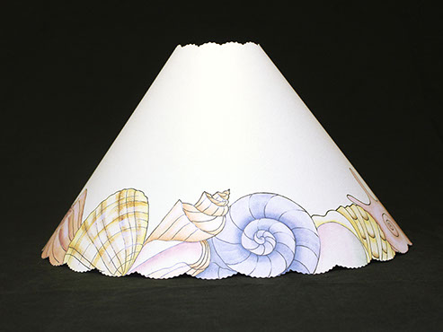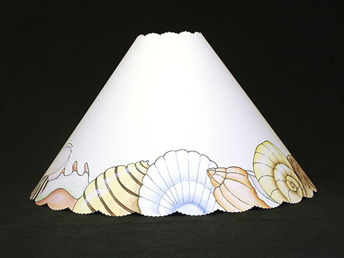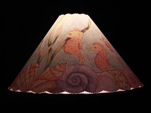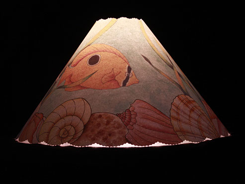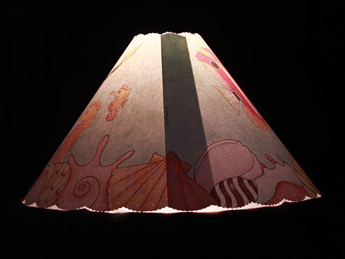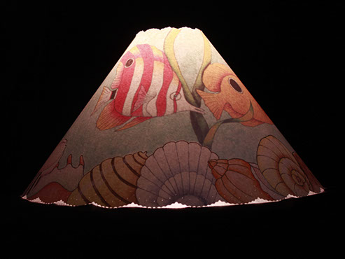Shells align the edge of this shade. Light reveals an underwater scene with colorful fish, even seahorses! #416