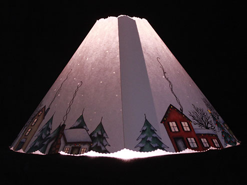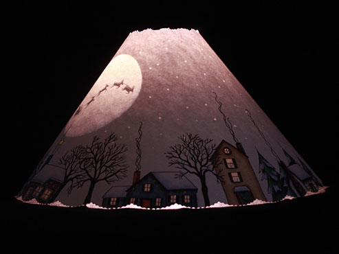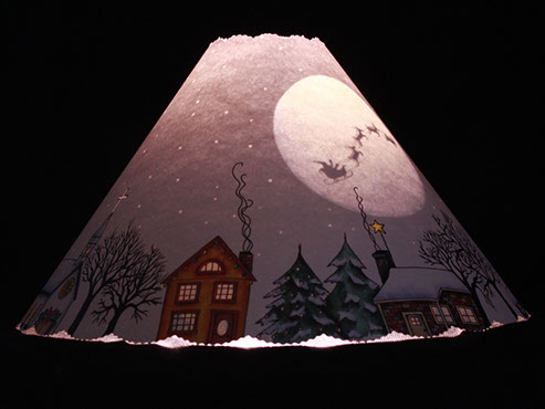 For the Christmas holiday season...a sleepy little town gets ready for a visit from Santa. The light allows the stars to shine as reindeer pull the sleigh across the moon. #417