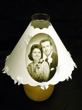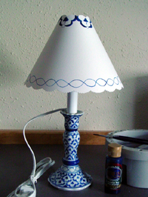 Lamp with painted/pierced mug shade