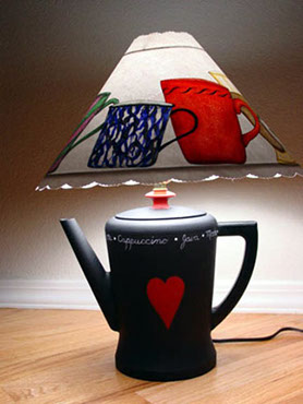 Coffee pot lamp & coffee mugs
